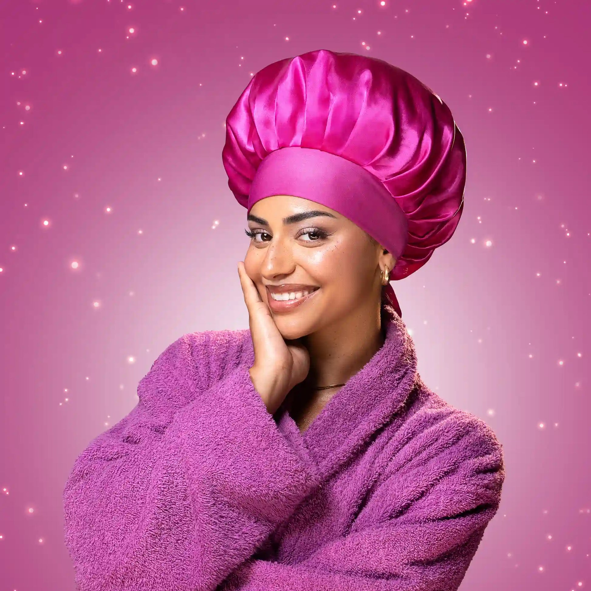 - Un bonnet en satin doux et respirant pour protéger vos cheveux durant la nuit, aider à réduire la casse et préserver l'hydratation.