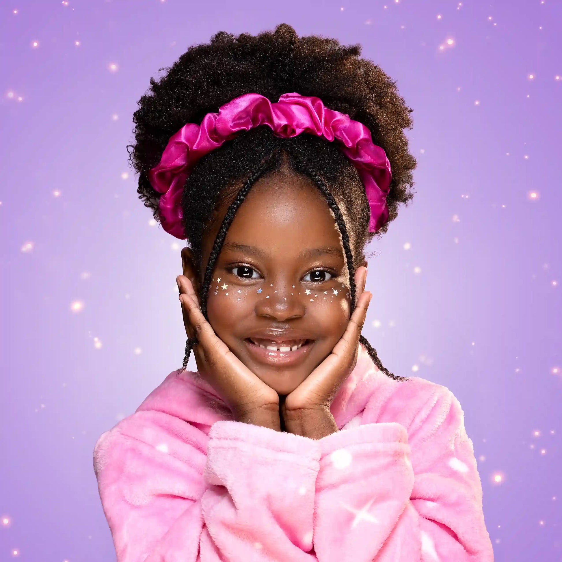 Notre Kit de nuit en satin; le secret pour préserver les boucles de votre enfant pendant son sommeil.